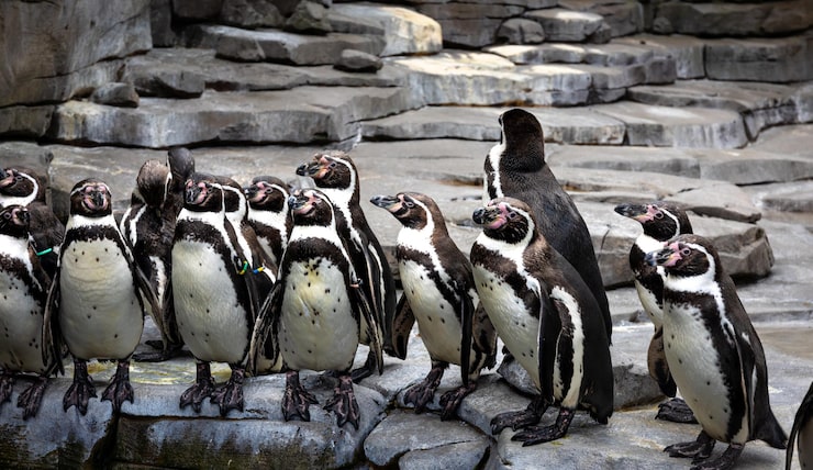 Auch der Felsenpinguin gehört zu den Pinguinen, die in kalten Gewässern leben, aber weniger extremen Bedingungen ausgesetzt sind als die Antarktisbewohner. Diese Pinguine sind in der südlichen Hemisphäre weit verbreitet und leben in Kolonien an felsigen Küsten. Sie haben ihren Namen aufgrund der steinigen Küstenabschnitte, in denen sie ihre Nester bauen – eine kluge Wahl, um sich vor Feinden zu schützen!