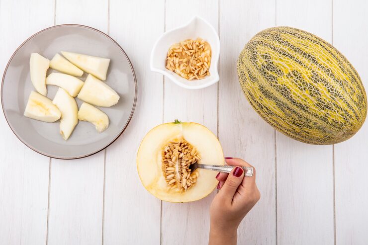 Bevor wir uns in die Schlacht mit der Honigmelone stürzen, ist eine gute Vorbereitung das A und O. Zuerst gilt: Ein scharfes Messer ist dein bester Freund. Mit einem stumpfen Messer könnte man genauso gut mit einem Löffel kämpfen – und das endet meistens mit Frust und Fruchtbrei.